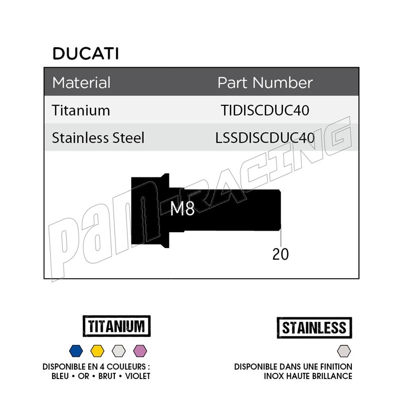 Vis de disques de frein avant titane APRILIA PRO-BOLT M8x(1.25)x20 MM.