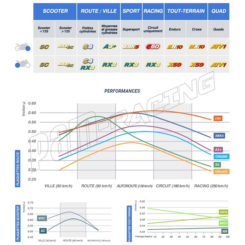 Plaquettes en métal fritté à très haut niveau de performance, développées spécialement pour les motos à vocation sportive. Excellent mordant pour un maximum de réactivité. Puissance de freinage élevée sur sec comme sur mouillé. Résistance au fading très élevée.