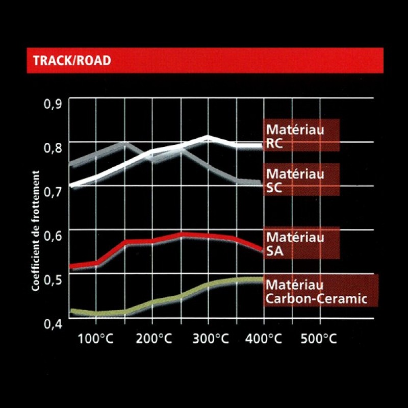 Ces caractéristiques assurent un freinage excellent et constant pendant toute la durée de la course et évite l'effet de 'fading'.