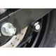 GSG Moto, société Allemande réputée pour la qualité de fabrication de pièces aluminium taillées dans la masse et de protections (avec absorbeurs de chocs), présente ici ses tampons de protections de chute.