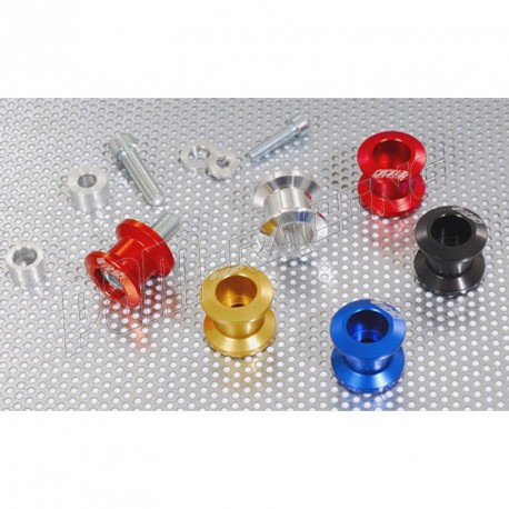 GSG Moto, société Allemande réputée pour la qualité de fabrication de pièces aluminium taillées dans la masse et de protections (avec absorbeurs de chocs), présente ici ses tampons de protections de chute.