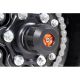 GSG Moto, société Allemande réputée pour la qualité de fabrication de pièces aluminium taillées dans la masse et de protections (avec absorbeurs de chocs), présente ici ses tampons de protections de chute.