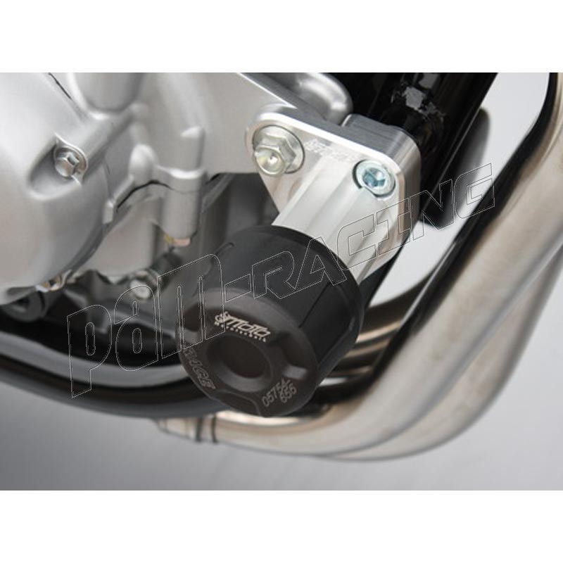 GSG Moto, société Allemande réputée pour la qualité de fabrication de pièces aluminium taillées dans la masse et de protections (avec absorbeurs de chocs), présente ici ses tampons de protections de chute.