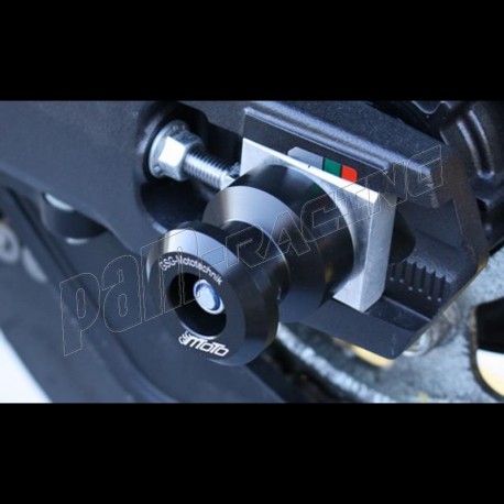 GSG Moto, société Allemande réputée pour la qualité de fabrication de pièces aluminium taillées dans la masse et de protections (avec absorbeurs de chocs), présente ici ses tampons de protections de chute.