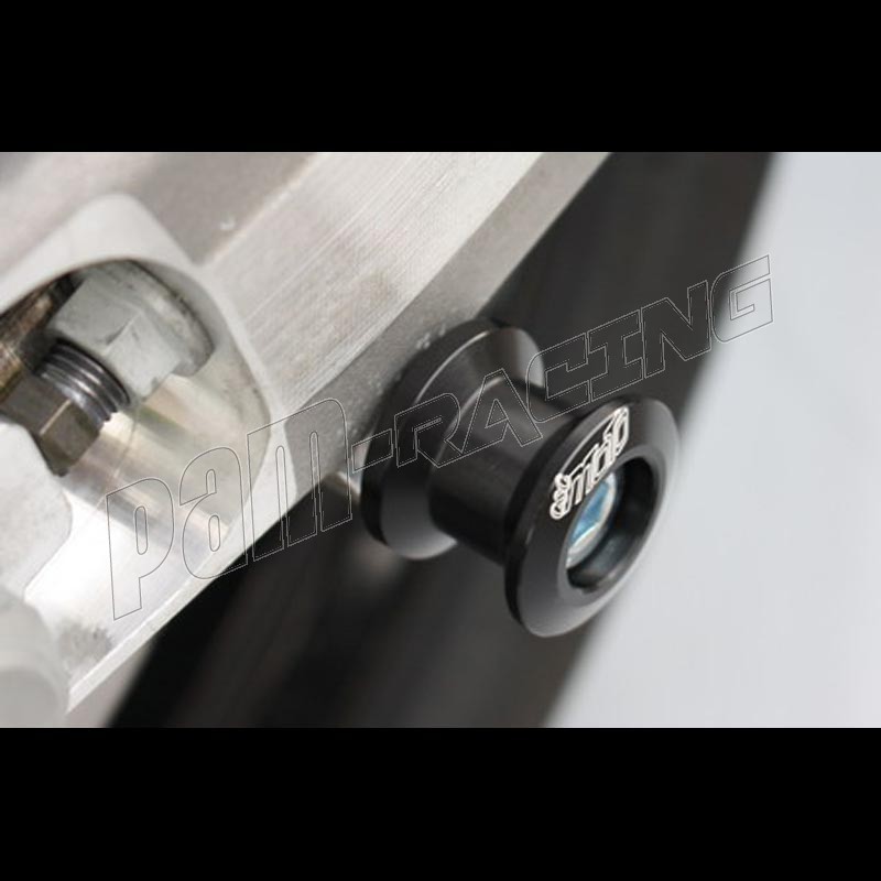 GSG Moto, société Allemande réputée pour la qualité de fabrication de pièces aluminium taillées dans la masse et de protections (avec absorbeurs de chocs), présente ici ses tampons de protections de chute.