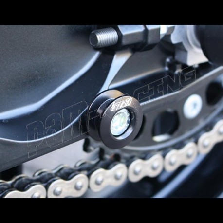 GSG Moto, société Allemande réputée pour la qualité de fabrication de pièces aluminium taillées dans la masse et de protections (avec absorbeurs de chocs), présente ici ses tampons de protections de chute.