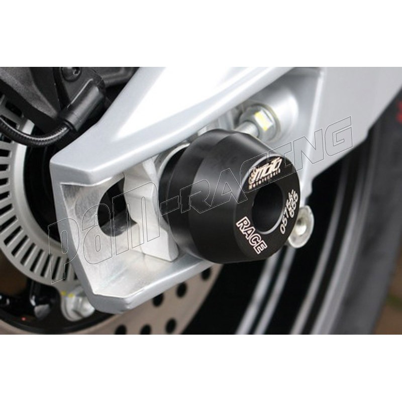 GSG Moto, société Allemande réputée pour la qualité de fabrication de pièces aluminium taillées dans la masse et de protections (avec absorbeurs de chocs), présente ici ses tampons de protections de chute.