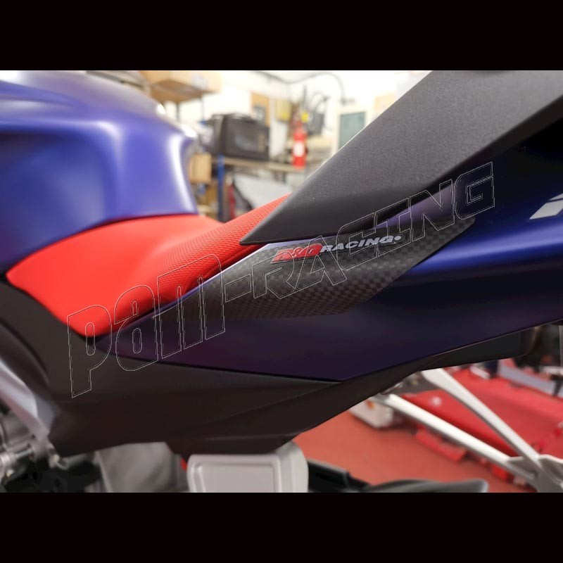 Les sliders de réservoir et de coque arrière R&G Racing sont réalisés en fibre de carbone renforcée de kevlar pour obtenir une excellente protection et résistance à l'abrasion. Moulés pour épouser parfaitement les courbes de votre moto, ils se positionnent aux endroits sensibles afin de protéger le réservoir et la coque arrière de tout choc éventuel.