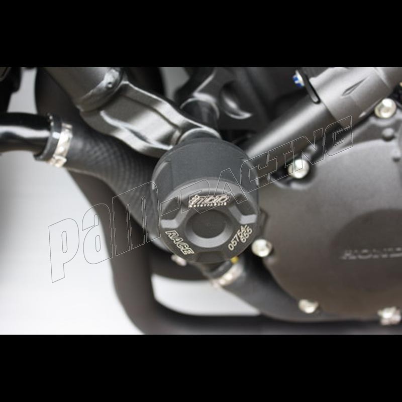 GSG Moto, société Allemande réputée pour la qualité de fabrication de pièces aluminium taillées dans la masse et de protections (avec absorbeurs de chocs), présente ici ses tampons de protections de chute.