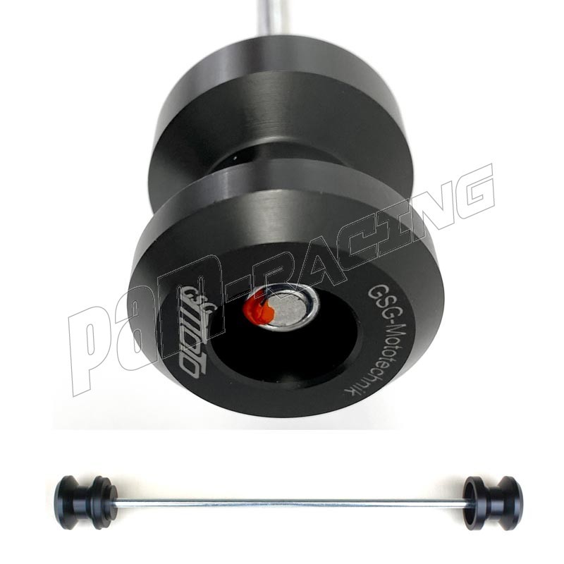 GSG Moto, société Allemande réputée pour la qualité de fabrication de pièces aluminium taillées dans la masse et de protections (avec absorbeurs de chocs), présente ici ses tampons de protections de chute.