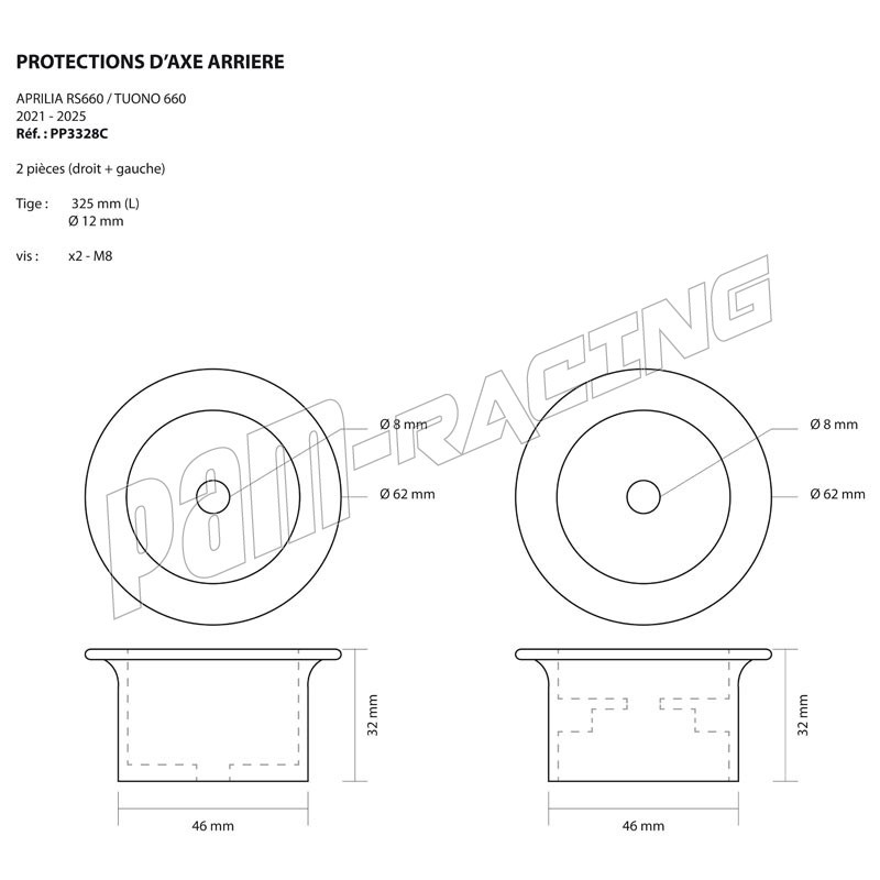 Tampons de protection axe de roue arrière PP Tuning RS660/Tuono 660 2020-2025