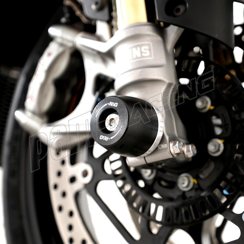 Les protections de fourches R&G Racing permettent de protéger le bas de fourche ainsi que les disques et étriers de freins en cas du choc ou de chute.