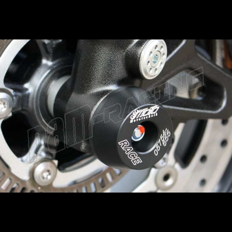 GSG Moto, société Allemande réputée pour la qualité de fabrication de pièces aluminium taillées dans la masse et de protections (avec absorbeurs de chocs), présente ici ses tampons de protections de chute.