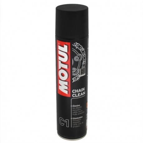 Chain Clean MOTUL nettoie parfaitement tous les types de chaînes des motos (routières et tout-terrain), des quads et des kartings. Elimine tous les dépôts incrustés : sable, terre, huile, graisses… Sa formulation sans chlore, au pouvoir dégraissant extrême convient parfaitement aux chaînes à joints toriques O-ring, X-ring, Z-ring. Utiliser avant chaque graissage de la chaine.