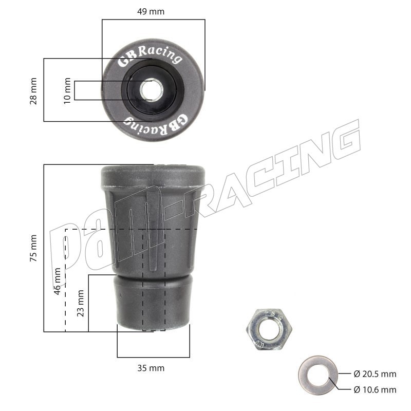 Remplacement Tampon pour protection de cadre inférieur GB Racing 990, 990R Superduke, Super Moto 950/R, Super Moto 990T.