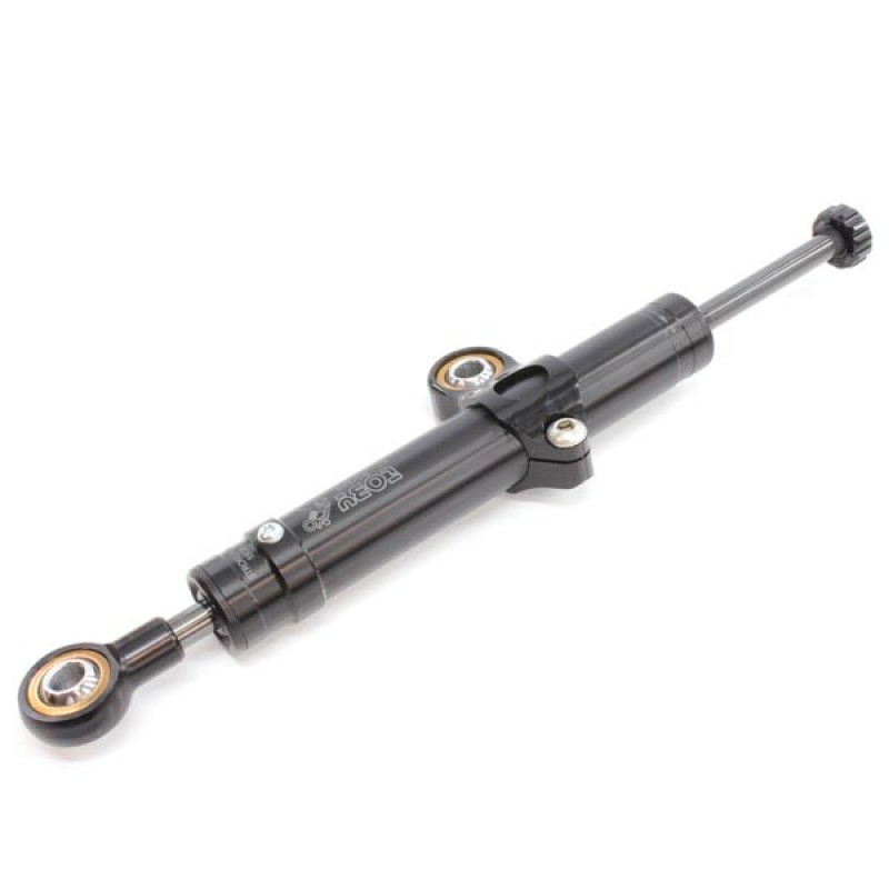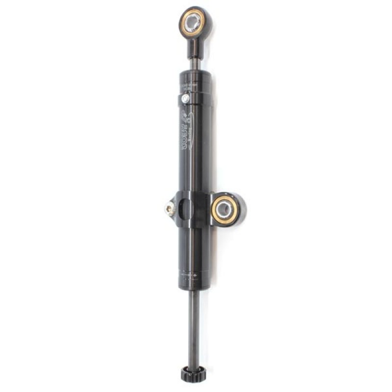 Réglable sur 20 positions, l'amortisseur de direction Toby existe en deux versions, différenciées par les réglages et l'hydraulique, plus fermée sur la version racing.
