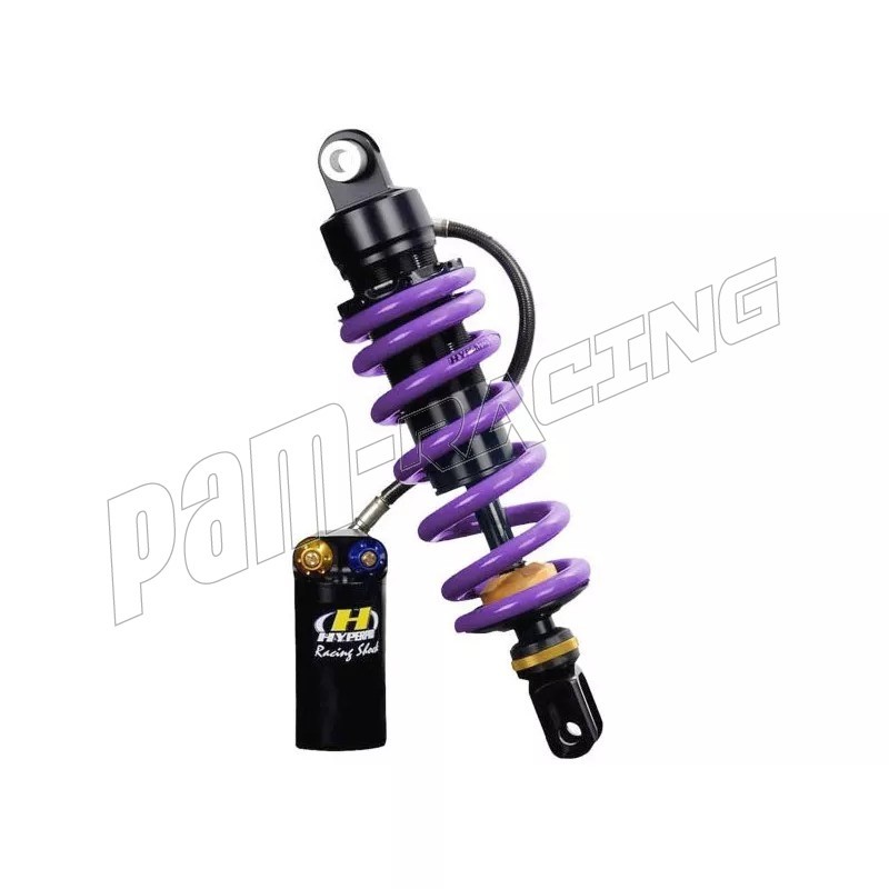 Grâce à son réservoir monté sur flexible, vous pouvez positionner cet amortisseur sur la moto avec le meilleur angle. Réglage en compression haute et basse vitesse sur 30 clics. Livré par défaut avec un ressort professif (couleur violet ou noir au choix), ressort linéaire en option. La fabrication de ces amortisseurs est faite à la demande pour vous construire un amortisseur sur mesure, tout l'assemblage est réalisé au sein de l'unité de production Hyperpro.