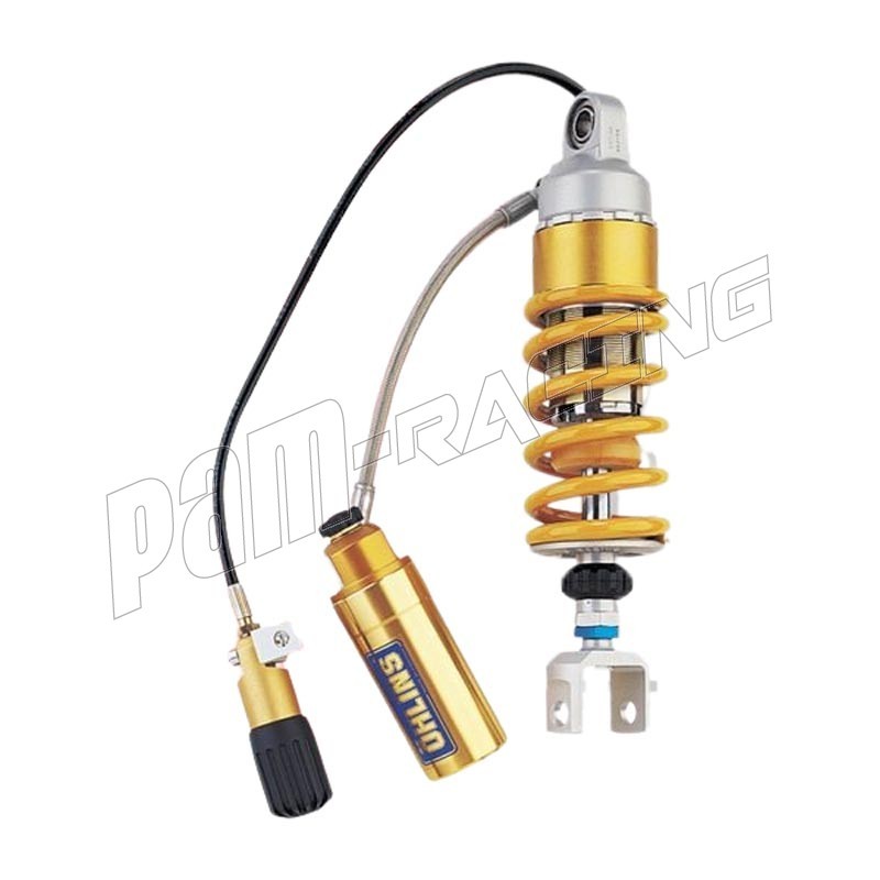 S46HR1C1S : Amortisseur type de carbon piston diamètre 46, avec bonbonne séparée, réglage compression, détente et réglage de la précharge du ressort hydraulique avec flexible.