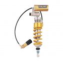 S46PR1C1LQ1S : Piston diamètre 46, avec bonbonne accolée, réglage compression, détente, réglage d'assiette et butée hydraulique, précharge de ressort hydraulique avec flexible.
