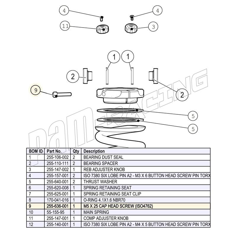 Vis à tête bombée inox M5*25 pour réglage de précontrainte amortisseur DDS LITE K-TECH
