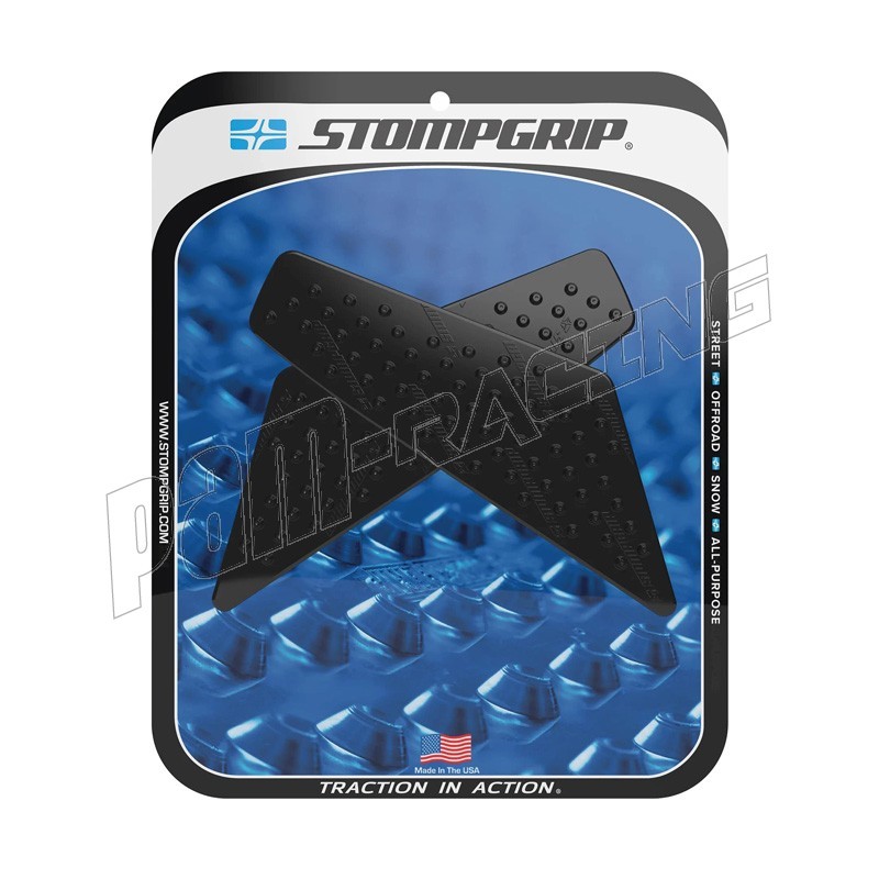 En 2002, STOMP Design élargit sa gamme jusqu'aux sports mécaniques, en lançant les grips de réservoir STOMPGRIP, spécialement conçus pour les moto-cross. Ces grips abrasifs ont pour vocation de garder le pilote en selle, en collant à son pantalon ou à ses bottes. Ils sont depuis lors applicables aux machines de route, de cross ou de quad. Ce sont finalement des accessoires indispensable, et des alliés contre la fatigue et le ballotage, quelle que soit votre machine de prédilection. Les grips sont spécialement conçus en fonction de la physionomie de chaque machine, ils sont également coupés à l'arrondis, afin d'éviter les décollements précoces. La surface en caoutchouc est soit transparente, soit noire, pour respecter l'esthétique de votre machine. Ces produits sont conçus pour s'user à la manière des pneus, et sont à remplacer périodiquement.