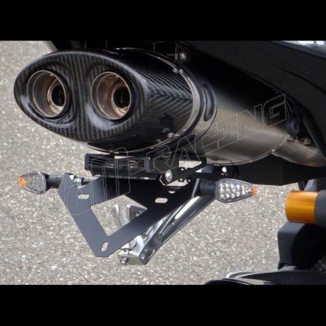 Support de plaque d'immatriculation inox BODIS 675 Daytona 2006-2012 avec éclairage de plaque LED et réflecteur.