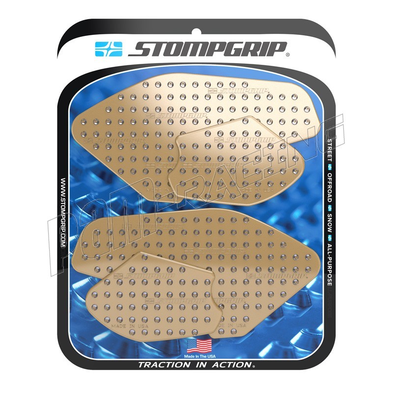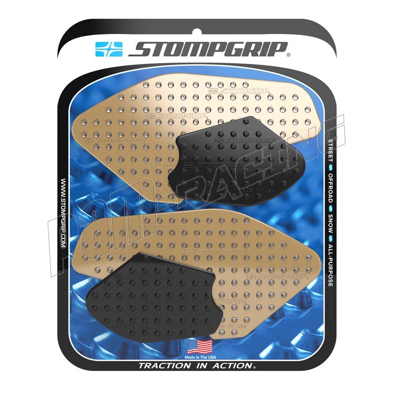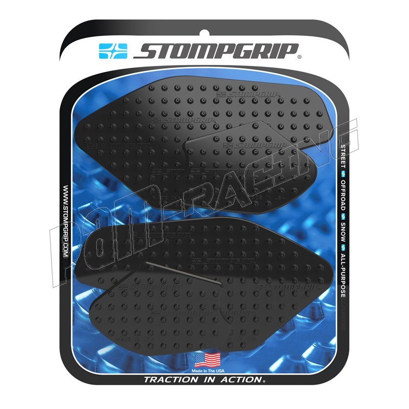 En 2002, STOMP Design élargit sa gamme jusqu'aux sports mécaniques, en lançant les grips de réservoir STOMPGRIP, spécialement conçus pour les moto-cross. Ces grips abrasifs ont pour vocation de garder le pilote en selle, en collant à son pantalon ou à ses bottes. Ils sont depuis lors applicables aux machines de route, de cross ou de quad. Ce sont finalement des accessoires indispensable, et des alliés contre la fatigue et le ballotage, quelle que soit votre machine de prédilection. Les grips sont spécialement conçus en fonction de la physionomie de chaque machine, ils sont également coupés à l'arrondis, afin d'éviter les décollements précoces. La surface en caoutchouc est soit transparente, soit noire, pour respecter l'esthétique de votre machine. Ces produits sont conçus pour s'user à la manière des pneus, et sont à remplacer périodiquement.