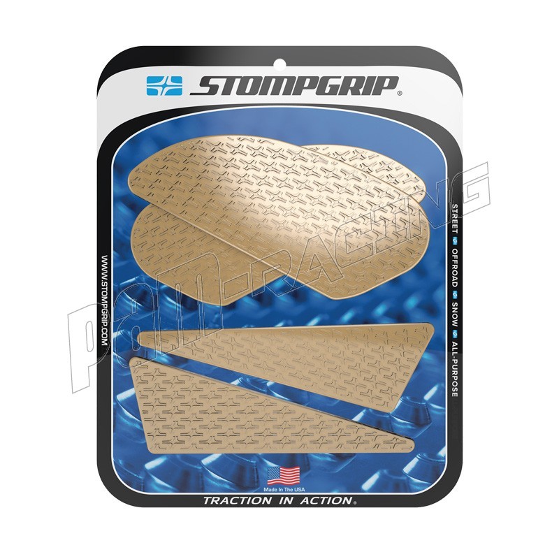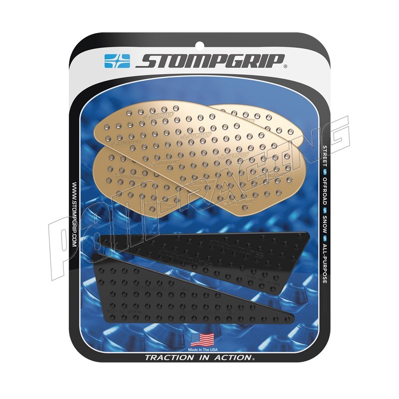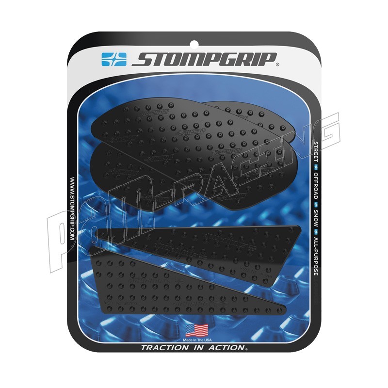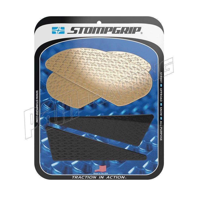 En 2002, STOMP Design élargit sa gamme jusqu'aux sports mécaniques, en lançant les grips de réservoir STOMPGRIP, spécialement conçus pour les moto-cross. Ces grips abrasifs ont pour vocation de garder le pilote en selle, en collant à son pantalon ou à ses bottes. Ils sont depuis lors applicables aux machines de route, de cross ou de quad. Ce sont finalement des accessoires indispensable, et des alliés contre la fatigue et le ballotage, quelle que soit votre machine de prédilection. Les grips sont spécialement conçus en fonction de la physionomie de chaque machine, ils sont également coupés à l'arrondis, afin d'éviter les décollements précoces. La surface en caoutchouc est soit transparente, soit noire, pour respecter l'esthétique de votre machine. Ces produits sont conçus pour s'user à la manière des pneus, et sont à remplacer périodiquement.