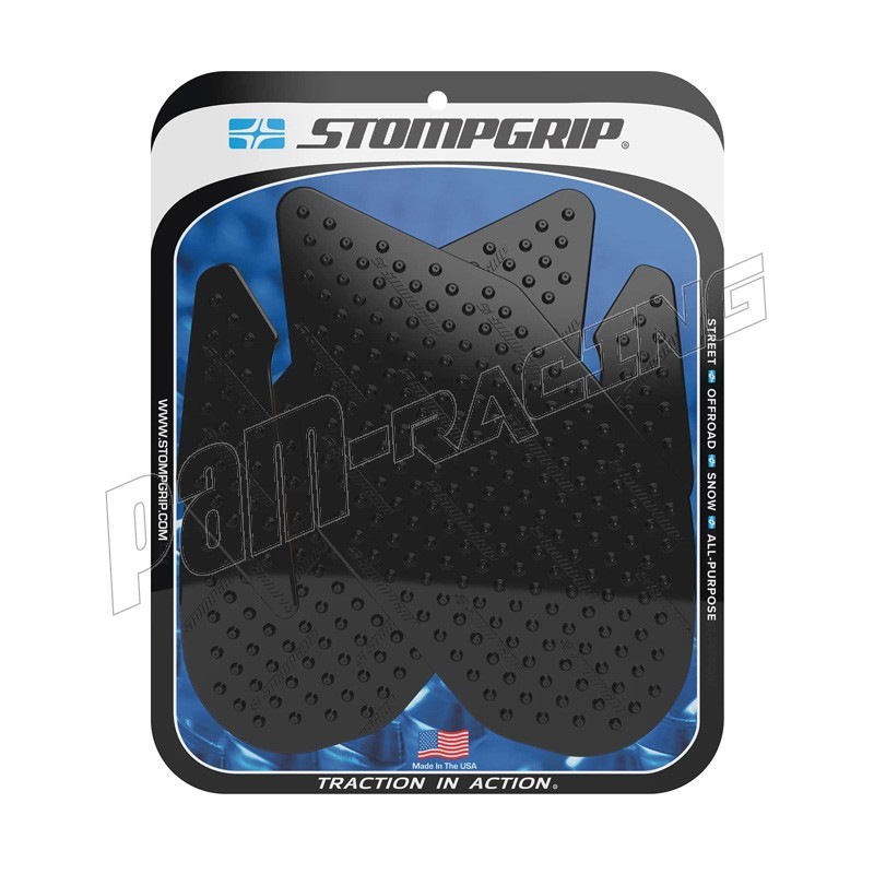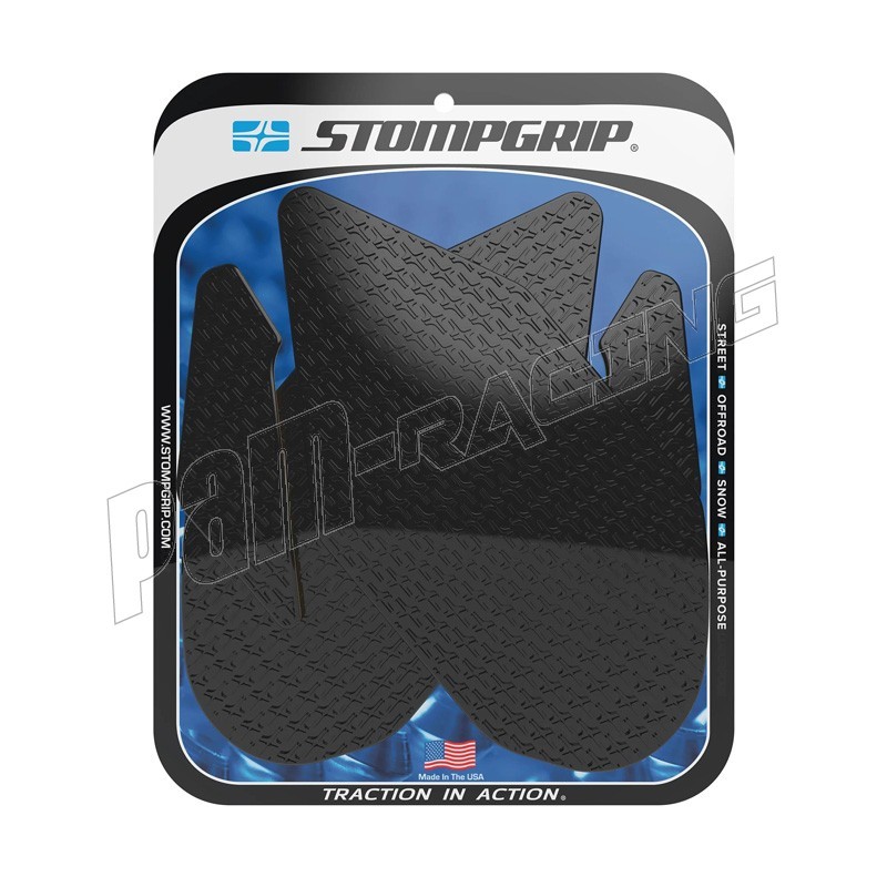 En 2002, STOMP Design élargit sa gamme jusqu'aux sports mécaniques, en lançant les grips de réservoir STOMPGRIP, spécialement conçus pour les moto-cross. Ces grips abrasifs ont pour vocation de garder le pilote en selle, en collant à son pantalon ou à ses bottes. Ils sont depuis lors applicables aux machines de route, de cross ou de quad. Ce sont finalement des accessoires indispensable, et des alliés contre la fatigue et le ballotage, quelle que soit votre machine de prédilection. Les grips sont spécialement conçus en fonction de la physionomie de chaque machine, ils sont également coupés à l'arrondis, afin d'éviter les décollements précoces. La surface en caoutchouc est soit transparente, soit noire, pour respecter l'esthétique de votre machine. Ces produits sont conçus pour s'user à la manière des pneus, et sont à remplacer périodiquement.