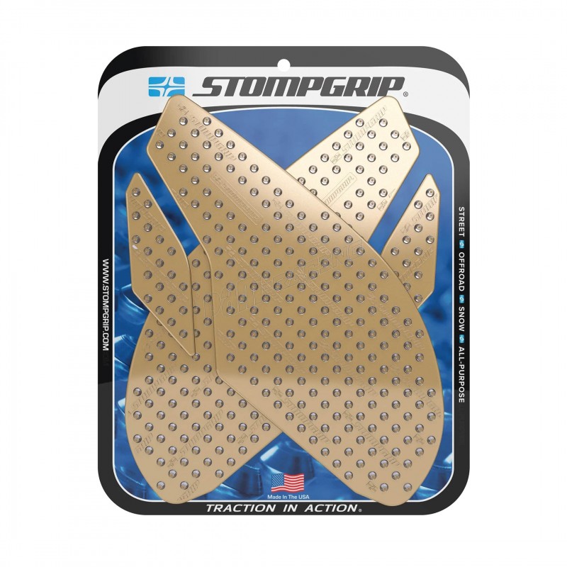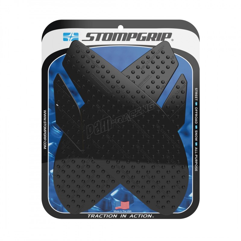 En 2002, STOMP Design élargit sa gamme jusqu'aux sports mécaniques, en lançant les grips de réservoir STOMPGRIP, spécialement conçus pour les moto-cross. Ces grips abrasifs ont pour vocation de garder le pilote en selle, en collant à son pantalon ou à ses bottes. Ils sont depuis lors applicables aux machines de route, de cross ou de quad. Ce sont finalement des accessoires indispensable, et des alliés contre la fatigue et le ballotage, quelle que soit votre machine de prédilection. Les grips sont spécialement conçus en fonction de la physionomie de chaque machine, ils sont également coupés à l'arrondis, afin d'éviter les décollements précoces. La surface en caoutchouc est soit transparente, soit noire, pour respecter l'esthétique de votre machine. Ces produits sont conçus pour s'user à la manière des pneus, et sont à remplacer périodiquement.