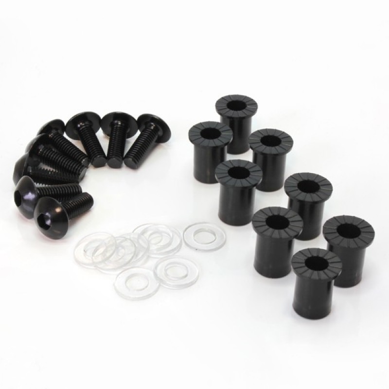 Lot de 6 vis alu M5 + silentblocks caoutchouc + rondelles - kit fixation pour bulle ou carénage.